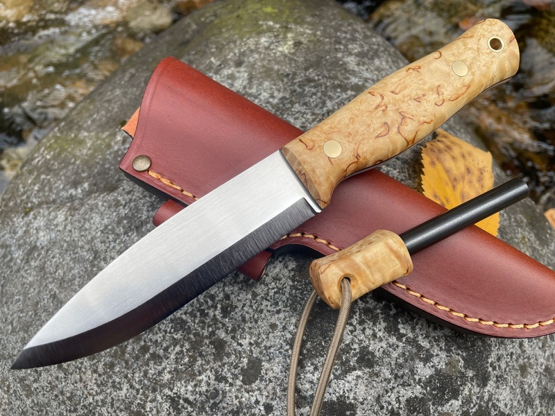 This model also includes a firesteel loop on the sheath and a matching curly birch firesteel!