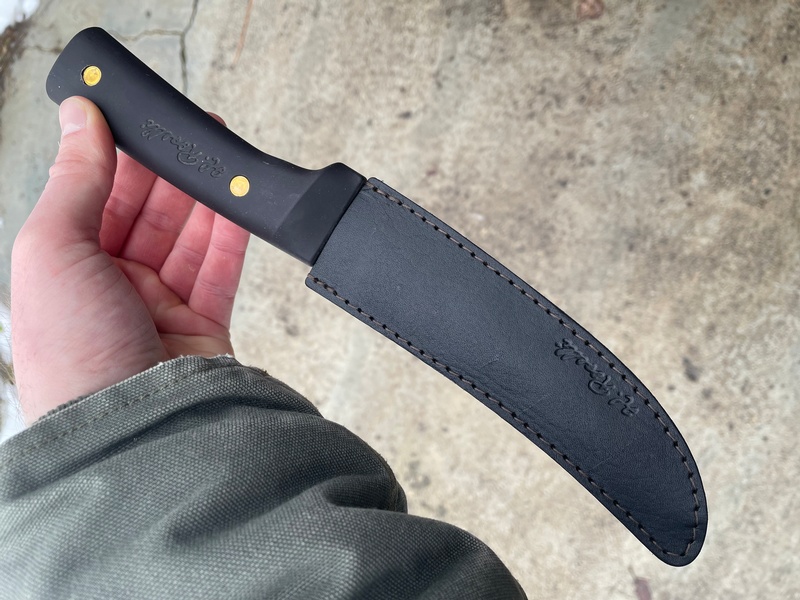 The knife’s silicone handle is designed for a hygienic, secure, and comfortable grip, even in wet conditions, ensuring optimal safety and control during use. Its ergonomic design enables comfortable cutting for extended periods, while the Ultra High Carbon blade maintains its sharp edge with minimal upkeep. Additionally, the knife comes with a handmade leather sheath for safe transportation and storage.