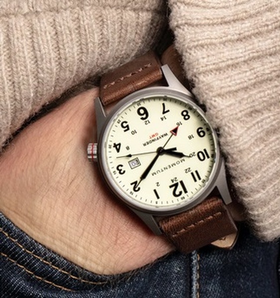 Momentum Wayfinder GMT White face Brown Leather Strap 40mm