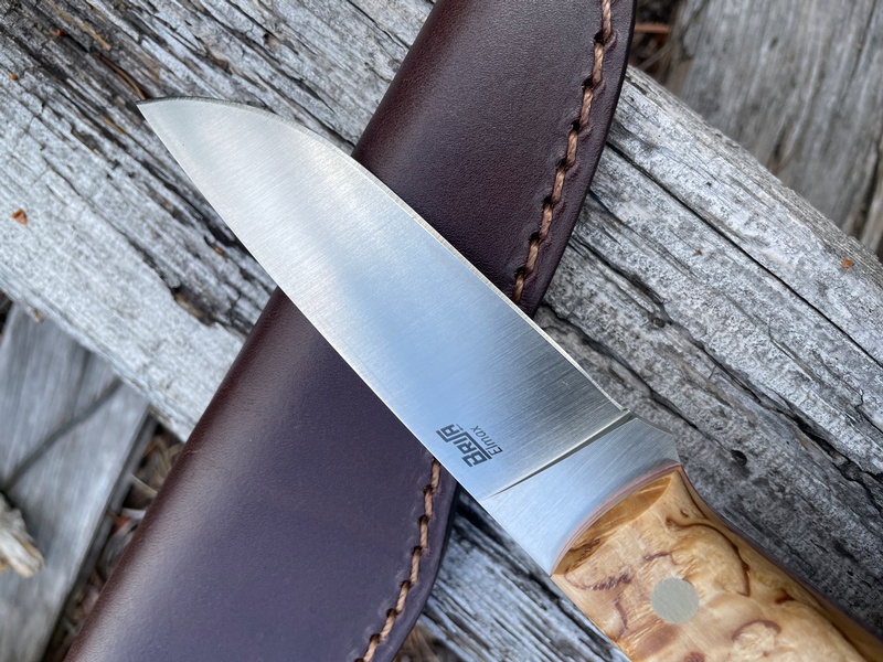 This is the new Trapper in the ELMAX steel, excellent edge holding and a very tough Steel, a great choice for the demands of bushcraft and wood work.