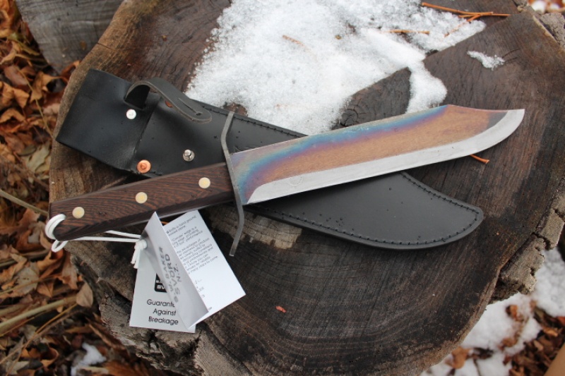 A true and faithfull replica of the famous Von Tempsky Forest Bowie, made famous by that man in the 1880's. This is a large, very robust bowie Knife. Well made, thick Swedish carbon steel blade, hardwood handle with heavy pins and hand guard. In the typical Bowie style of the backwoods knives of the time.