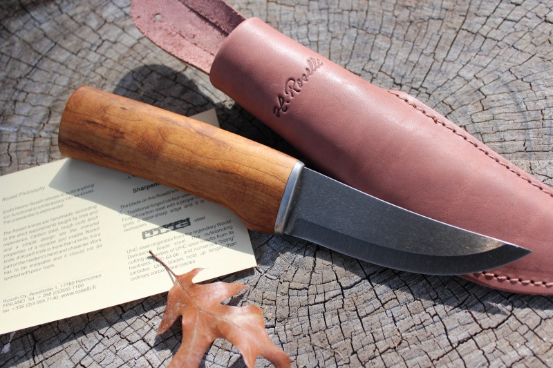 Great knife, with unique UHC steel. Traditional upswept blade and ample birch handle makes for a superb outdoors or hunting knife. The steel is hard!! (64HRC!!), great edge holding and the knife is comfortable and strong. Scandi grind.