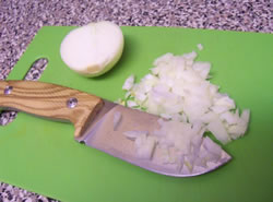 Of course I have pressed the M3 into kitchen service as well. In this front I have found the only limiting factor was the relatively short blade. This knife has a 5mm thick blade. But because it is wide and has a full flat grind, the angle of the primary grind is shallow and "sharp", thus it exhibits very respectable slicing abilities with minimal splitting tendencies. And I took a few photos of some food slicing and dicing in the kitchen and out of doors.
