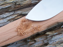 On this other photo the knife is separating some thin shavings from a notch.